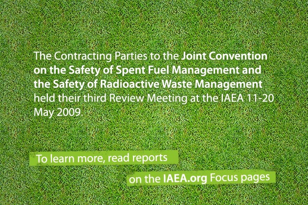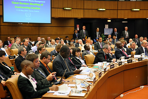 International "peer reviews" of national programmes for radioactive waste management are a prime feature of the Joint Convention on the Safety of Spent Fuel Management and the Safety of Radioactive Waste Management. At periodic review meetings, Contracting Parties take stock of each other's experience in implementing the agreement, reviewing compliance with each of the Convention's 25 Articles. (Photo Credit: A. Funnell/IAEA; Third Review Meeting of Joint Convention, May 2009)