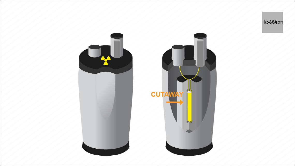 Provides medical isotopes used for medical diagnostic imaging. Provides shielding for the source during transport to hospitals and for ease of use.