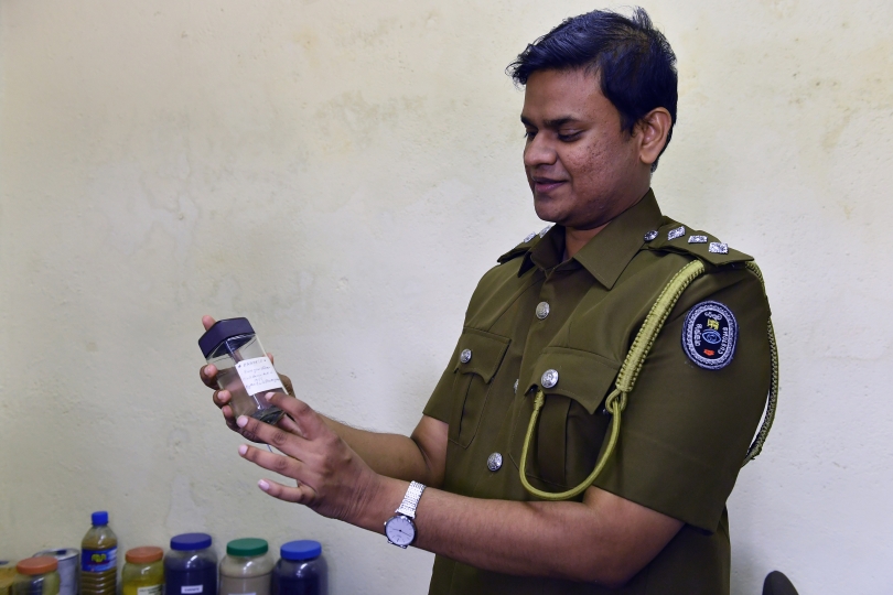 Indunil Liyanage, funcionario superior de aduanas de Sri Lanka, supervisa la capacitación de los funcionarios de aduanas responsables de evaluar las alarmas por radiación.<p>
