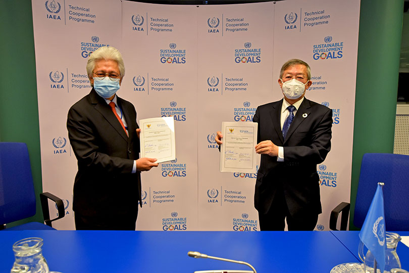 One Country Programme Framework (CPF) was signed on the margins of the General Conference. Darmansjah Djumala, Ambassador and Resident Representative of the Permanent Mission of Indonesia to the IAEA and Deputy Director General Dazhu Yang, display the newly signed document.