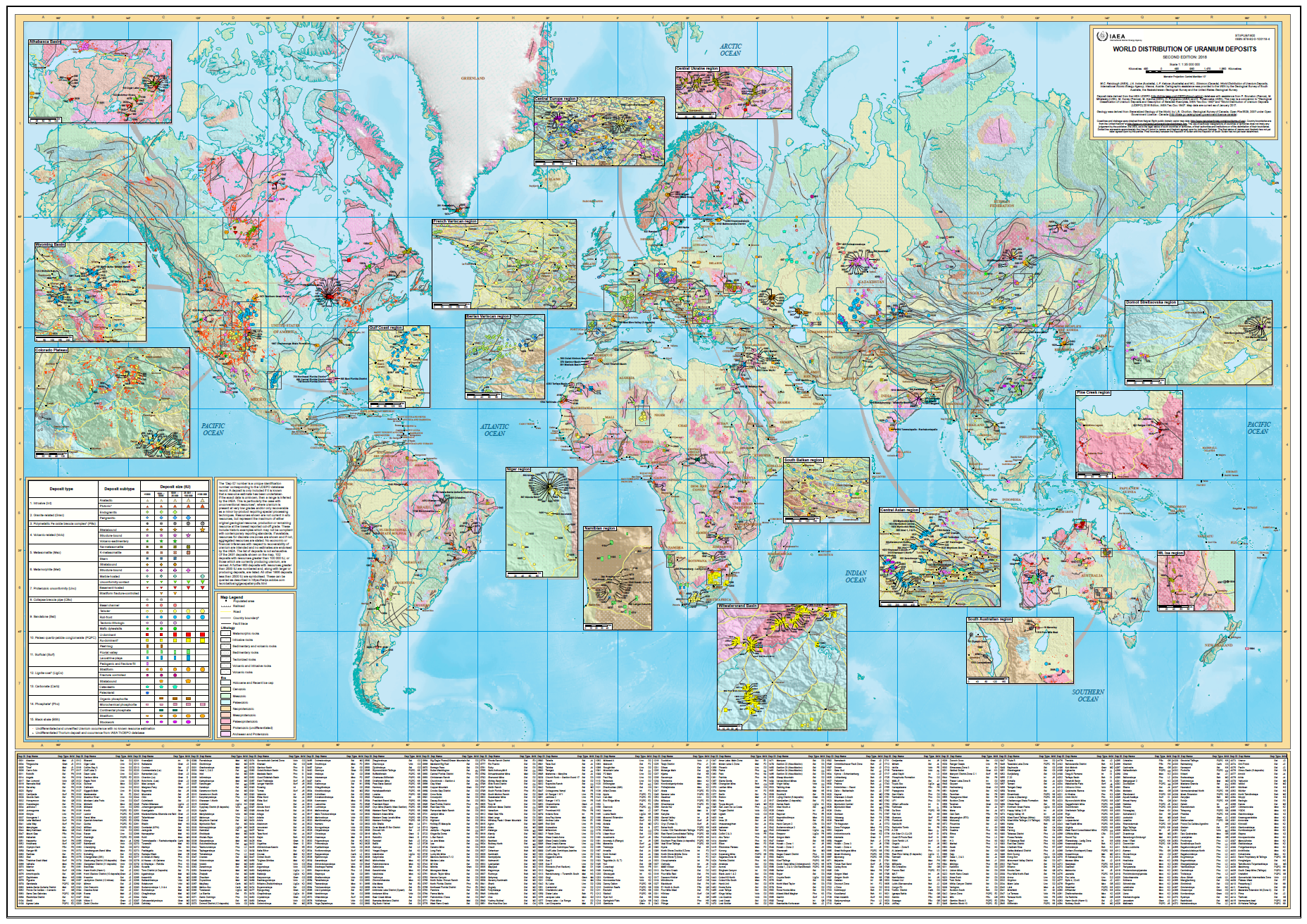 L’AIEA a mis en ligne une carte numérique complète, interactive et intégrée de la répartition de l’uranium et de ses gisements dans le monde. La deuxième édition de la Répartition mondiale des gisements d’uranium a été élaborée grace aux contributions du Service géologique du Saskatchewan, du Service géologique de l’Australie-Méridionale, et du Service géologique des états-Unis.