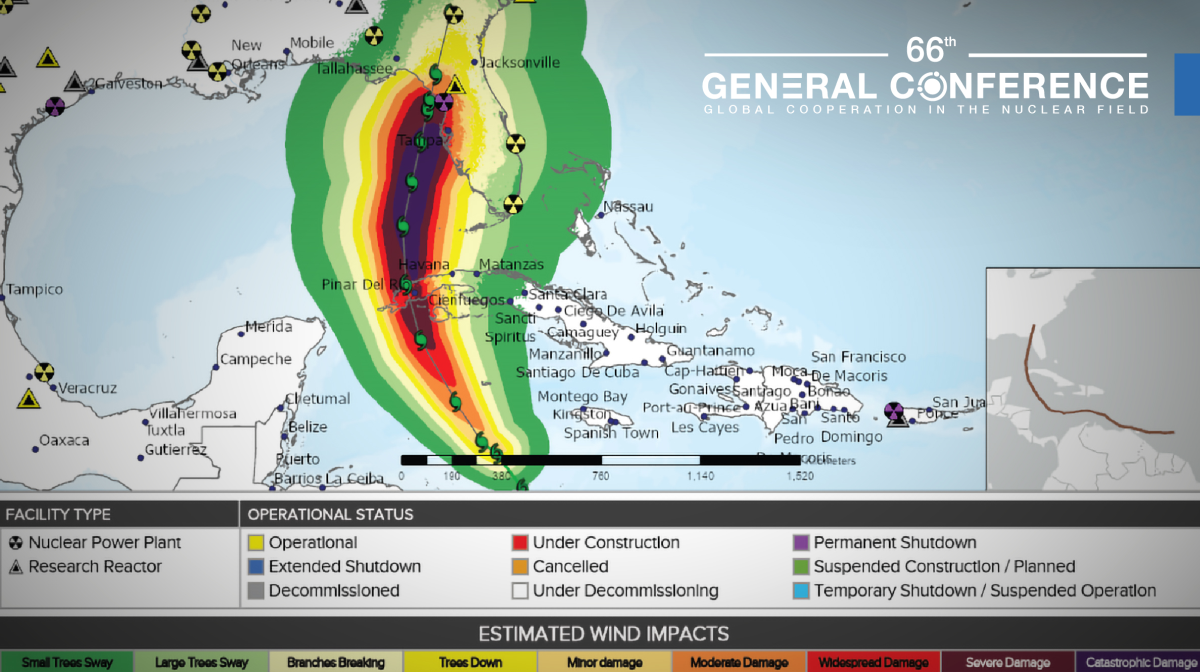 ? En cas de cyclone, par exemple, le rapport de notification d’événement contiendrait les informations de base sur le cyclone, présentées notamment sur des cartes, les ondes de tempête prévues sur les sites c?tiers, l’heure d’arrivée possible et les estimations de la vitesse du vent au niveau des installations nucléaires. Ces informations sont indispensables pour que l’IEC puisse prêter assistance rapidement aux pays touchés ?, explique M. Contri. ? Le système de notification des événements externes nous permet de suivre les aléas naturels se produisant à proximité non pas uniquement des centrales nucléaires mais de toutes les installations nucléaires du monde entier, y compris à proximité des grandes villes où se trouvent des sources radioactives qui pourraient être touchées par l’aléa. Ce système, qui fait partie intégrante du travail de l’AIEA, nous permet d’évaluer la situation et d’aider les pays à réduire les risques associés. Dans les années à venir, le changement climatique devrait rendre les aléas naturels de plus en plus puissants. Nous devons nous y préparer. ?