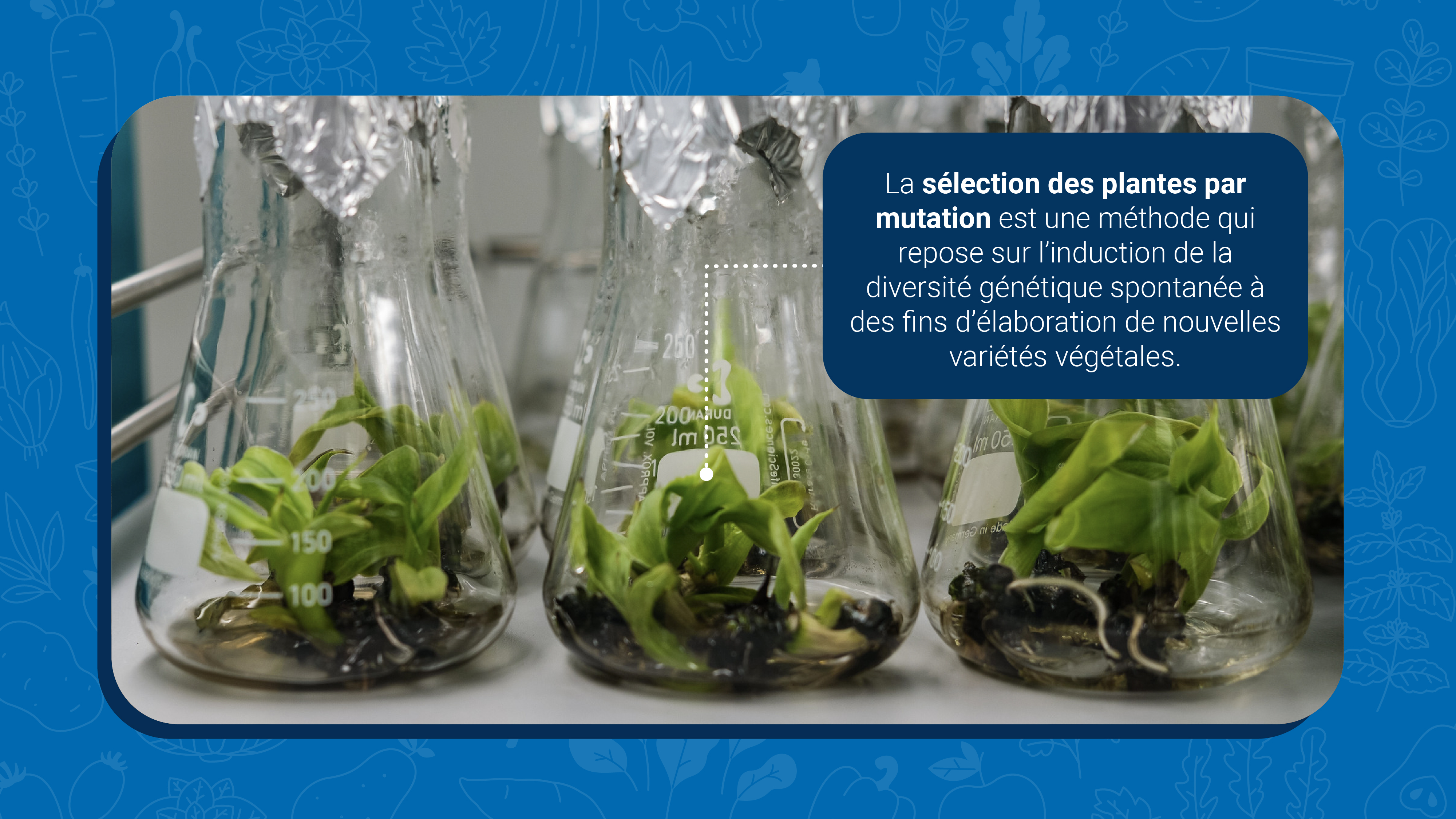 La sélection des plantes par mutation, également appelée sélection par variation, est un procédé qui fait appel à des techniques d’irradiation ou à des moyens chimiques pour induire une variation phytogénétique spontanée afin de créer de nouvelles variétés de cultures. La ? mutation ? est à l’origine de la plupart des variations génétiques et constitue le moteur de l’évolution. Il s’agit d’un processus naturel qui touche, de manière spontanée et lente – il s’étend sur plusieurs générations – aussi bien l’être humain que les espèces végétales ou animales et tous les êtres vivants, et qui se traduit par une altération de leur ADN, entra?nant de ce fait des modifications de leur organisme. La mutation peut être accélérée par des méthodes chimiques ou physiques, comme les rayonnements (l’? irradiation ?), afin d’obtenir des propriétés qui puissent être bénéfiques, dans le domaine de l’agriculture par exemple.