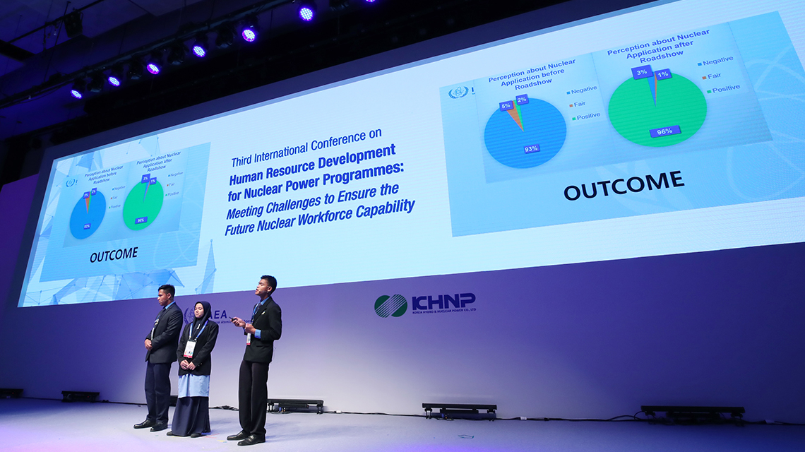 ? Avant ce projet, 93 % des participants se disaient hostiles à la science et à la technologie nucléaires ?, explique Safyyah bnti Muhammad Nasir, l’un des trois membres de l’équipe gagnante malaisienne. ? Mais après s’être familiarisés avec des éléments fondamentaux des applications nucléaires, 96 % d’entre eux ont une image positive aussi bien de l’énergie que de la science nucléaires ?.
