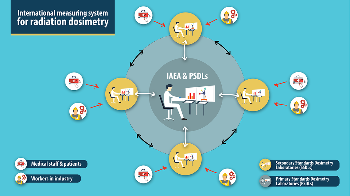 Dosimetry is the science of measuring radiation doses, and is crucial for protecting workers in industry, medical staff and patients. (Infographic: F. Nassif/IAEA)