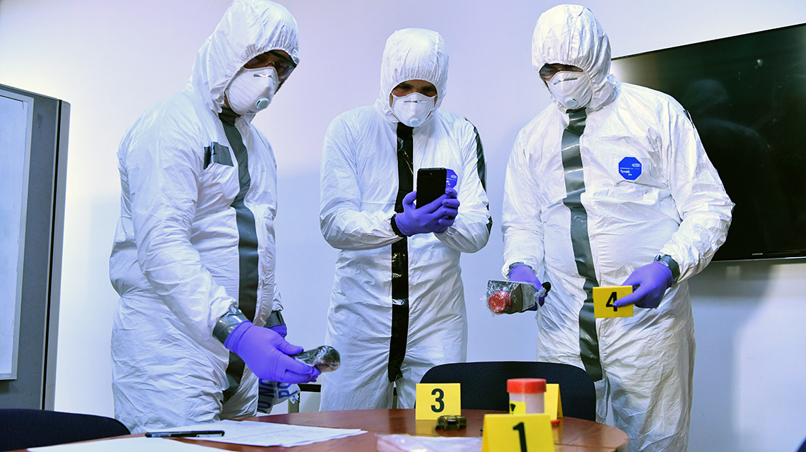The type of personal protective equipment (PPE) used by law enforcement officers during their investigation depends on the expected hazards and is guided by advice from scientific experts, who also advise local law enforcement on evidence recovery plans and analyse nuclear forensic evidence. Having established channels of communications and relationships is key to ensuring that any radiological crime scene is managed effectively and efficiently.