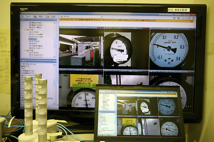 Pressure gauges are monitored via CCTV from desktop and laptop computers in the Emergency Response Centre. Instruments in many parts of the plant have to be monitored remotely by CCTV because of high on-site radiation.