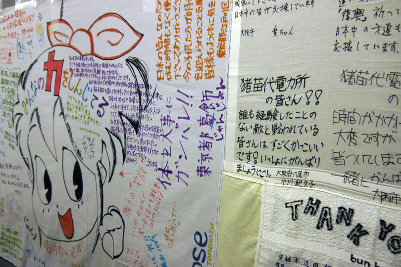 Messages of support from Japanese and foreign well-wishers line the walls of the Emergency Response Centre.
