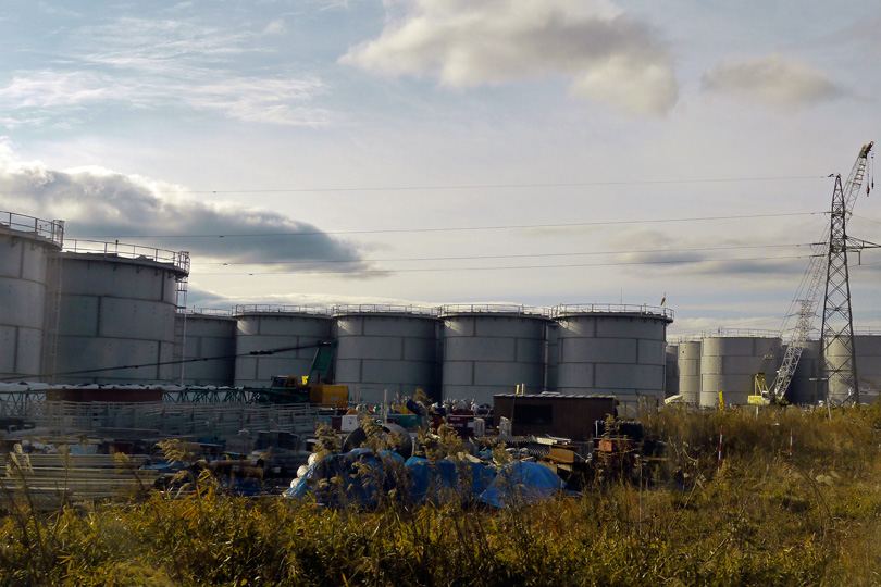 Storage tanks for contaminated water - a major challenge at the Fukushima Daiichi site. Highly contaminated water in the basement of the reactor buildings is pumped out and treated to reduce the level of radionuclides, particularly caesium, then recirculated to cool the reactor cores. But every day an additional 400 tonnes of groundwater seeps into the damaged reactor and turbine buildings, meaning that an ever-increasing amount of treated and untreated water needs to be stored. The total capacity of existing tanks is just over 240 000 cubic metres, and more are being built, putting a strain on available space.