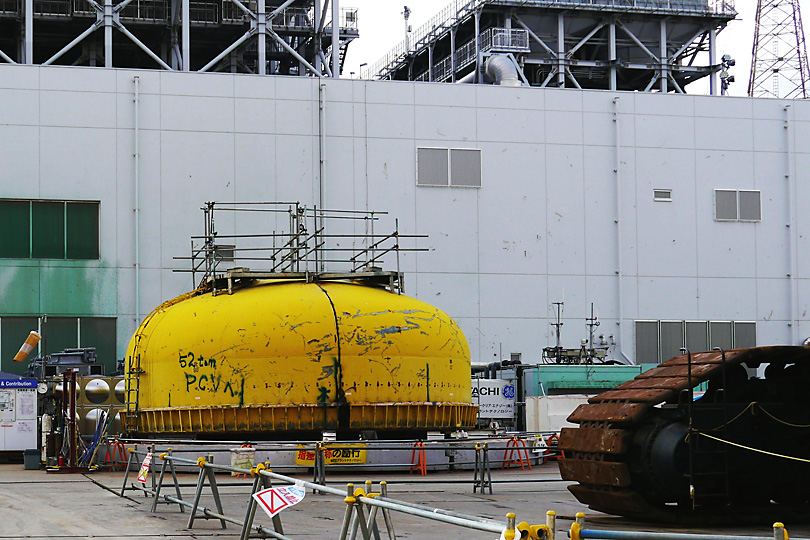 The lid of Unit 4's Primary Containment Vessel lies close to the reactor building. The reactor was shut down for maintenance at the time of the accident.