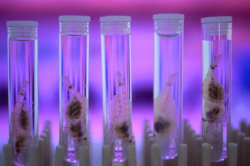 This includes research where microplastics are fed to shrimp to understand their uptake and possible transfer up the food chain and projects that bring scientists from around the world to understand the potential impact of ocean acidification on seafood safety.