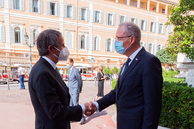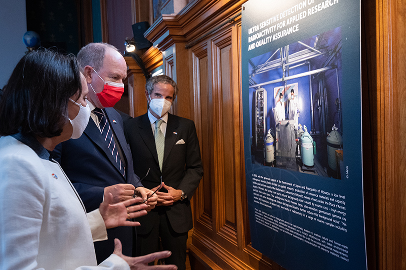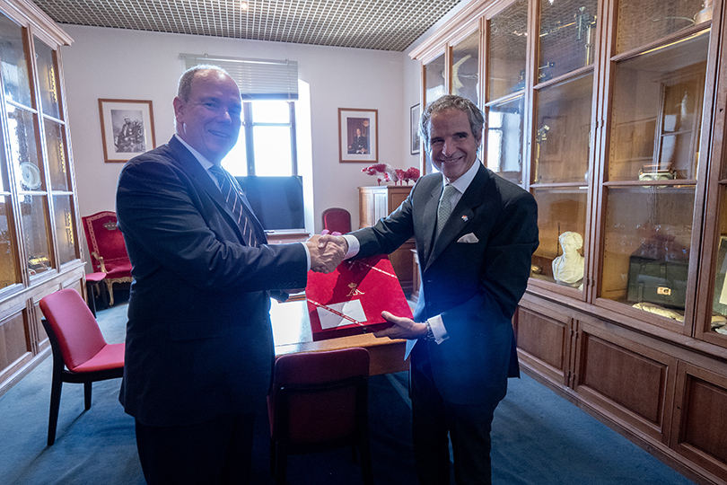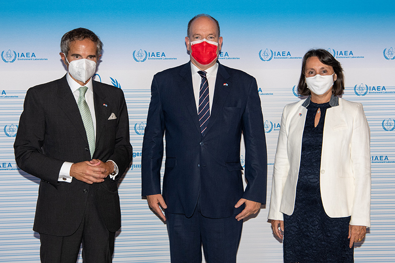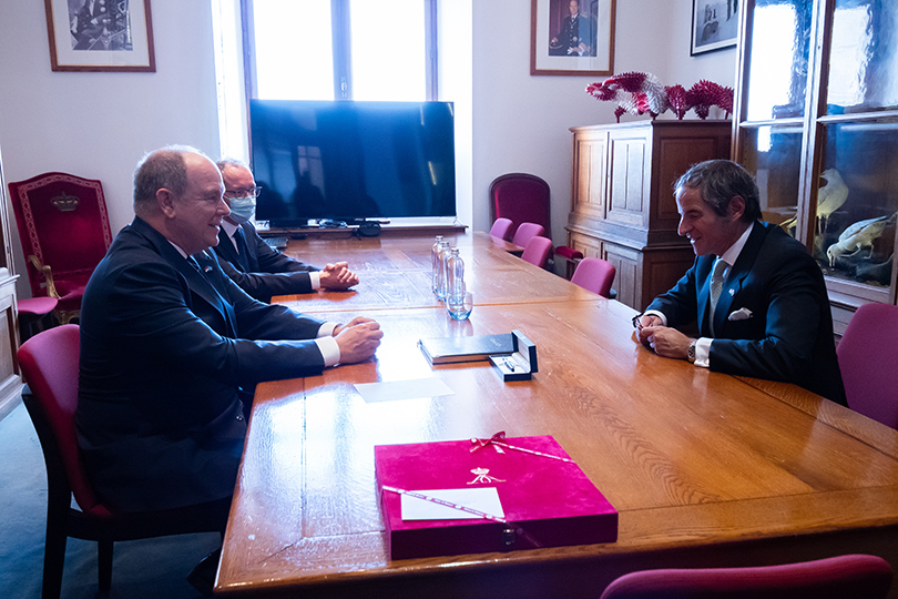 IAEA Director General Rafael Mariano Grossi meets H.S.H. Prince Albert II of Monaco and Robert Calcagno, Director of the Oceanographic Institute, on the occasion of the 60th anniversary of the IAEA Environment Laboratories in Monaco, 30 September 2021.
