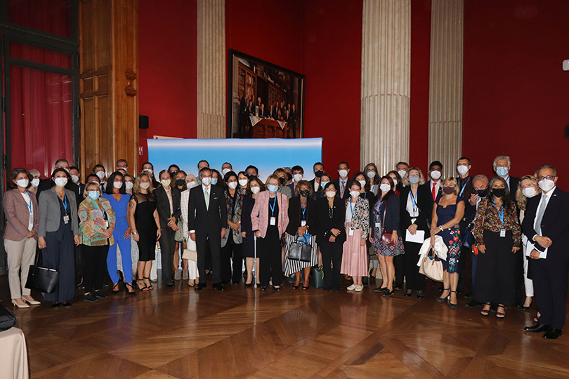 IAEA Director General Rafael Mariano Grossi flanked by staff of the IAEA Environment Laboratories in Monaco, which celebrated its 60th anniversary at a special event held at the Oceanographic Museum of Monaco, 30 September 2021.