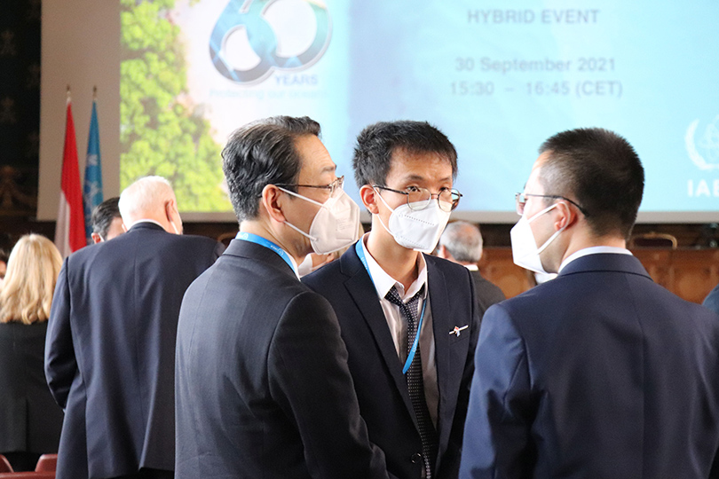 IAEA Director General Rafael Mariano Grossi meets Robert Calcagno, Director of the Oceanographic Institute of Monaco, at the 60th anniversary of the Agency’s Environment Laboratories, 30 September 2021.