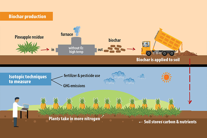 They are studying the use of biochar, a carbon-rich material made of pineapple plant residues.