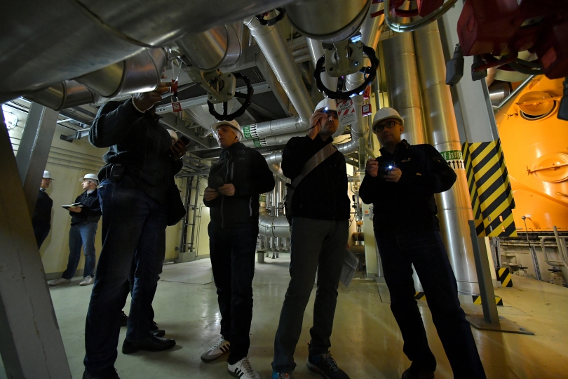 In the condenser bay, which is an area where steam is condensed after passing through the electricity-generating turbines, participants scanned the room to check whether various valves were positioned correctly according to the tags affixed to them. The exercise concluded with a discussion on the safety significance of the valves and other elements of the room.