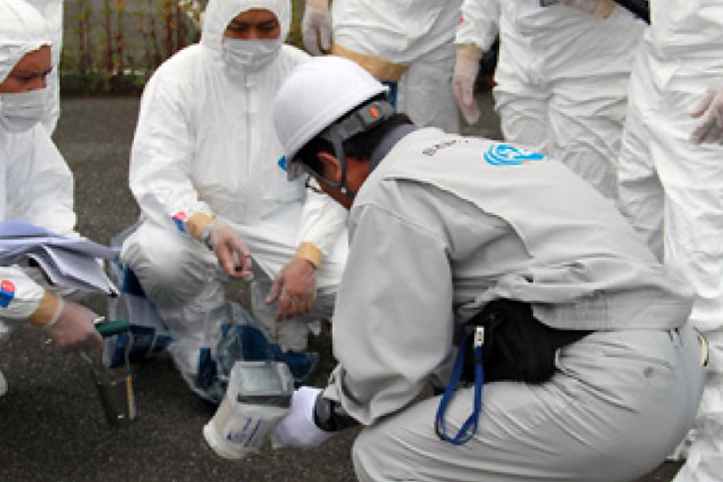Training participants receive hands-on instruction on monitoring during a nuclear or radiological emergency at the IAEA RANET Capacity Building Centre in Fukushima, Japan, October 2013.