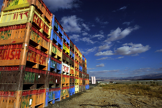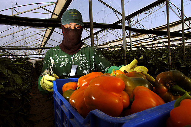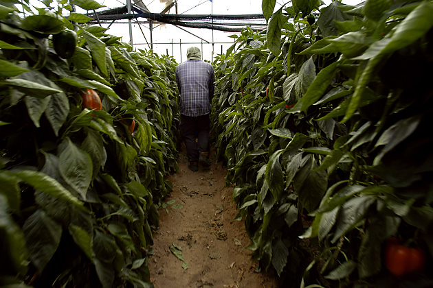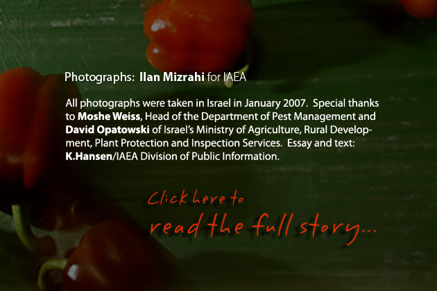 Bell peppers are grown inside enormous greenhouses that dot the Israeli side of the Arava Valley desert. A joint pest-control programme with neighbours Jordan and the Palestinian Authority has crippled the region's Medfly population and reduced farmers' reliance on insecticides.