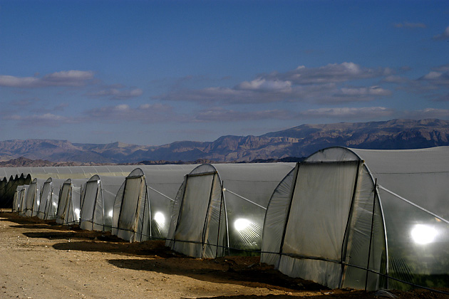 Greenhouse farms filled with fruit and vegetables line the Arava desert.