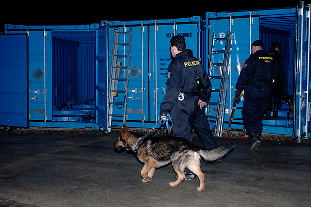 Day 2, 01:00 hours: Tight security measures are in place. Czech police officers and their sniffer dogs search all the containers for explosives.
