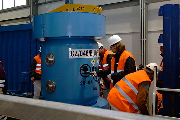 03:00 hours: Experts of a Czech transportation company specialized in handling hazardous material secure the casks with anchors.