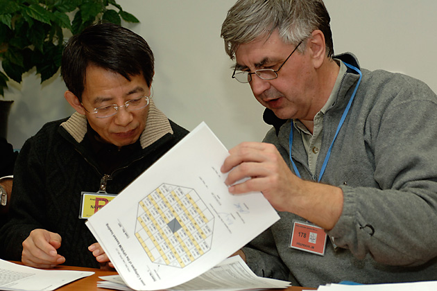 21:00 hours: The last one of hundreds of meetings held over four years to prepare the secret shipment. IAEA Safeguards Inspector Jeong Eui Sang discusses with Czech officials the procedures. This will be the 18th shipment of Russian origin HEU fuel to be returned to Russia under an IAEA Technical Cooperation project that runs with extra-budgetary funding from the US Department of Energy's National Nuclear Security Administration.