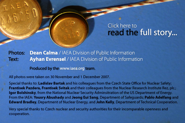 23:30 hours: After verifying that the Cobra seals are intact, Mr. Jeong replaces them with metal IAEA seals. They will be sent back to the IAEA's Vienna Headquarters by the Russians after the haul arrives in the Mayak facility, where it will be reprocessed.