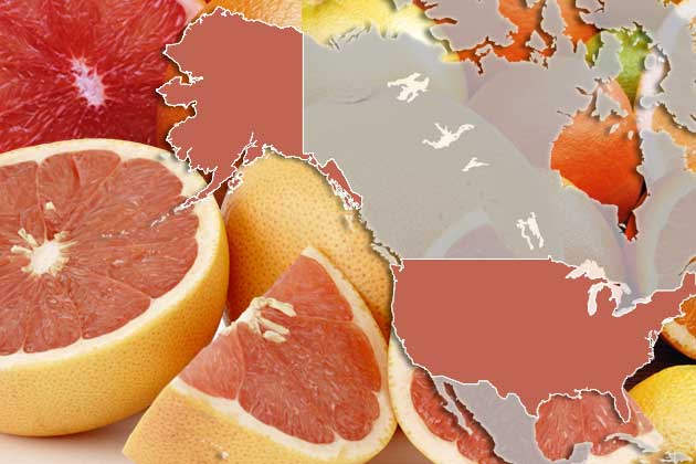 USA — The grapefruit variety ‘Rio Star’, with its characteristic bright red coloured flesh, now accounts for 75 percent of the highly lucrative US grapefruit production. © PhotoDisk, © Wikipedia