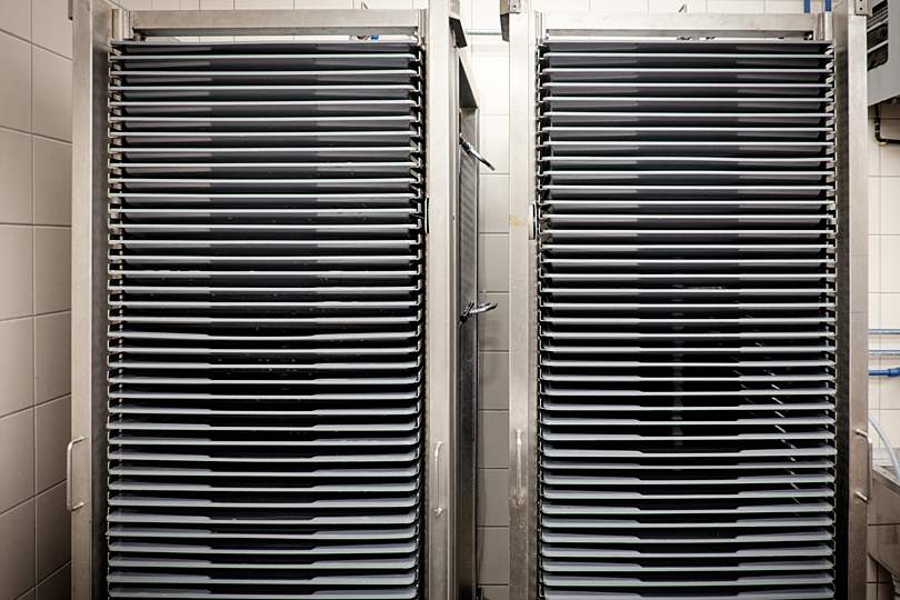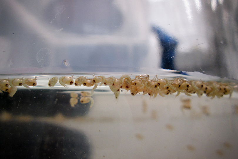 Once full, the trays can be stacked in a space-saving system where the eggs are left to hatch. This usually takes around 48 hours, after which they develop into larvae. These live in water but swim to the surface to breathe.