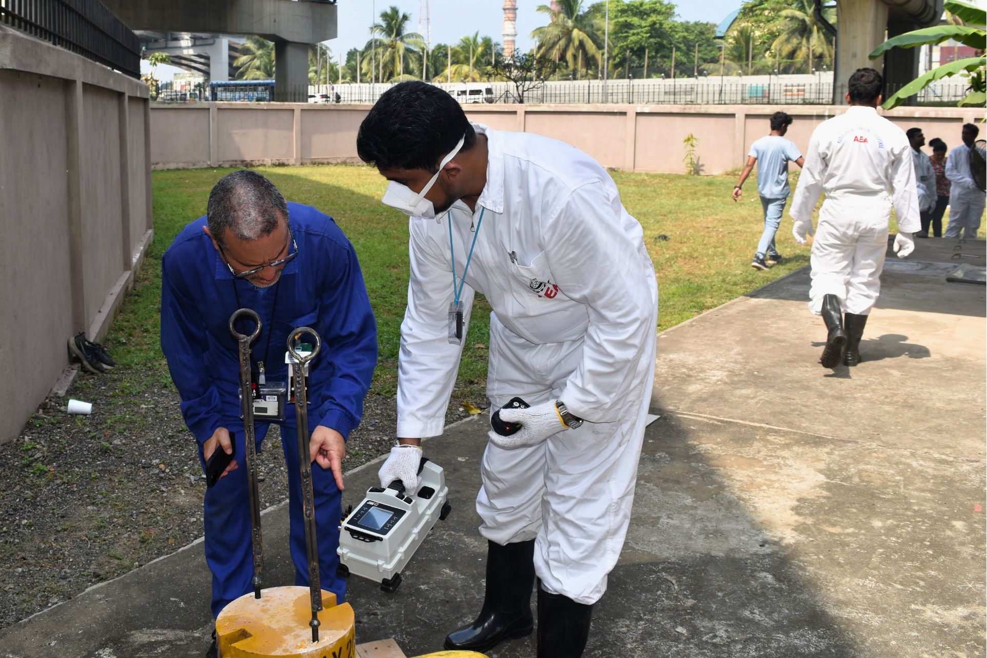 On the third day of the mission, the repackaging operation began. The team carefully removed the capsules using special tools and transferred them into the Niowave transport container, pictured here. The experts then conducted a final measurement to confirm the absence of radioactive contamination in all areas and to verify that radiation levels on the external surface of the transport container did not pose health risks. (Photo: IAEA)
