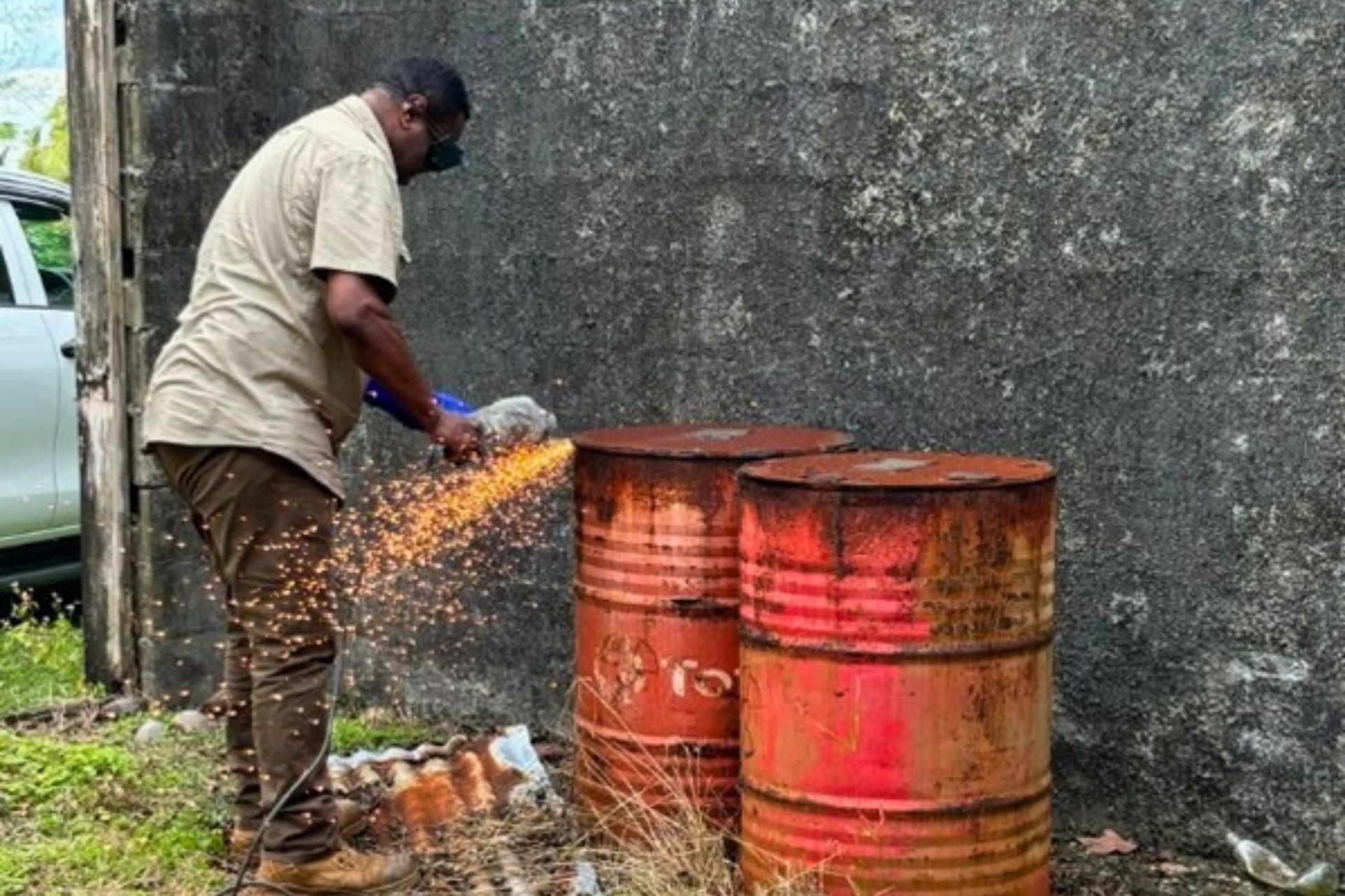 In September 2024, following a request from the Government of Fiji, an IAEA expert mission was deployed to Suva through an ongoing IAEA technical cooperation programme to support the recovery and transport of approximately 205mg of radium-226, stored in two old steel barrels, shown here.