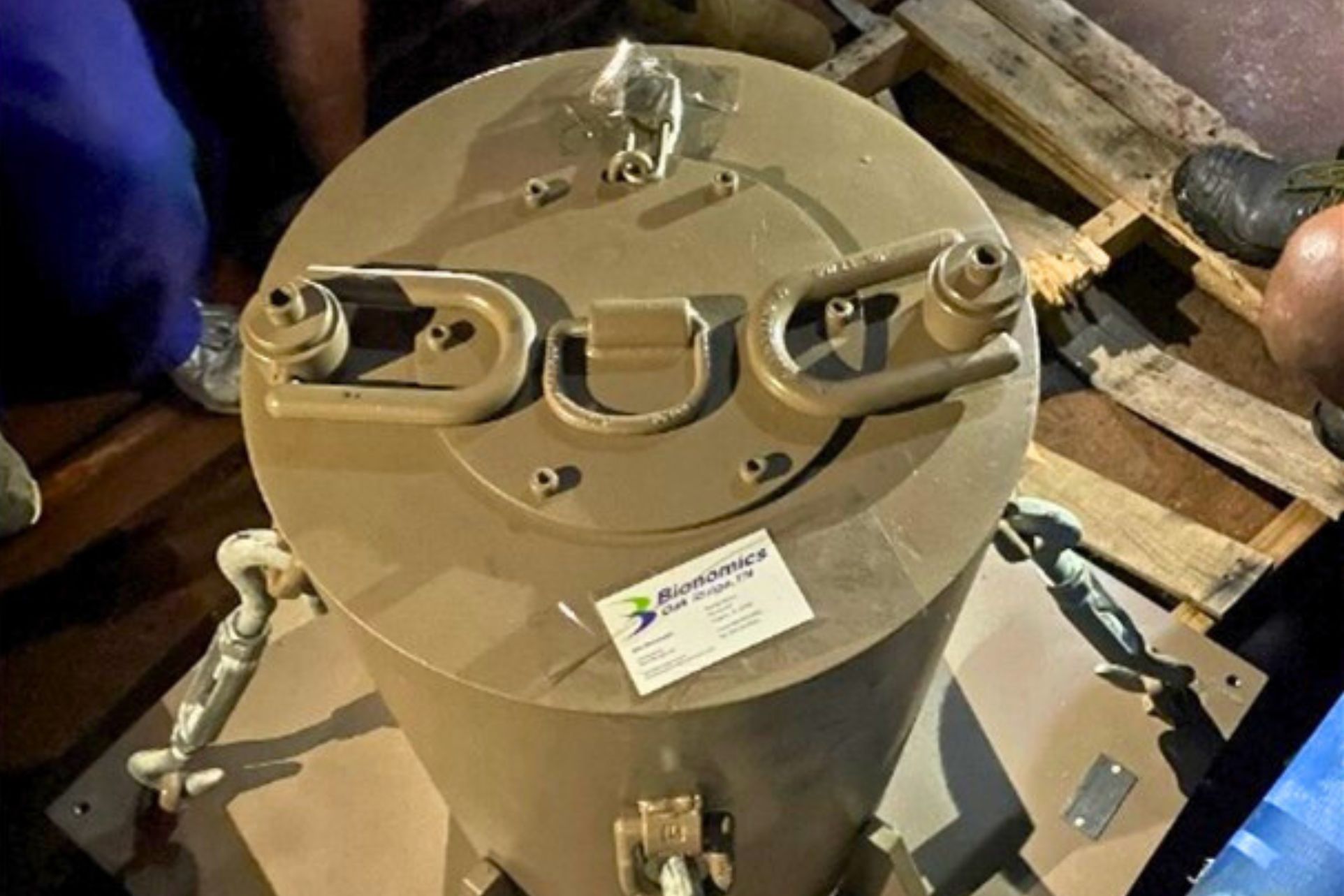The transport container was sent to a designated storage area managed by the Ministry of Health and Medical Services to await final shipment from Suva to Michigan, USA, where the radium-226 sources will be used as a feedstock for the production of actinium-225, an alpha-emitting isotope which is increasingly used in targeted cancer treatments. (Photo: Niowave)