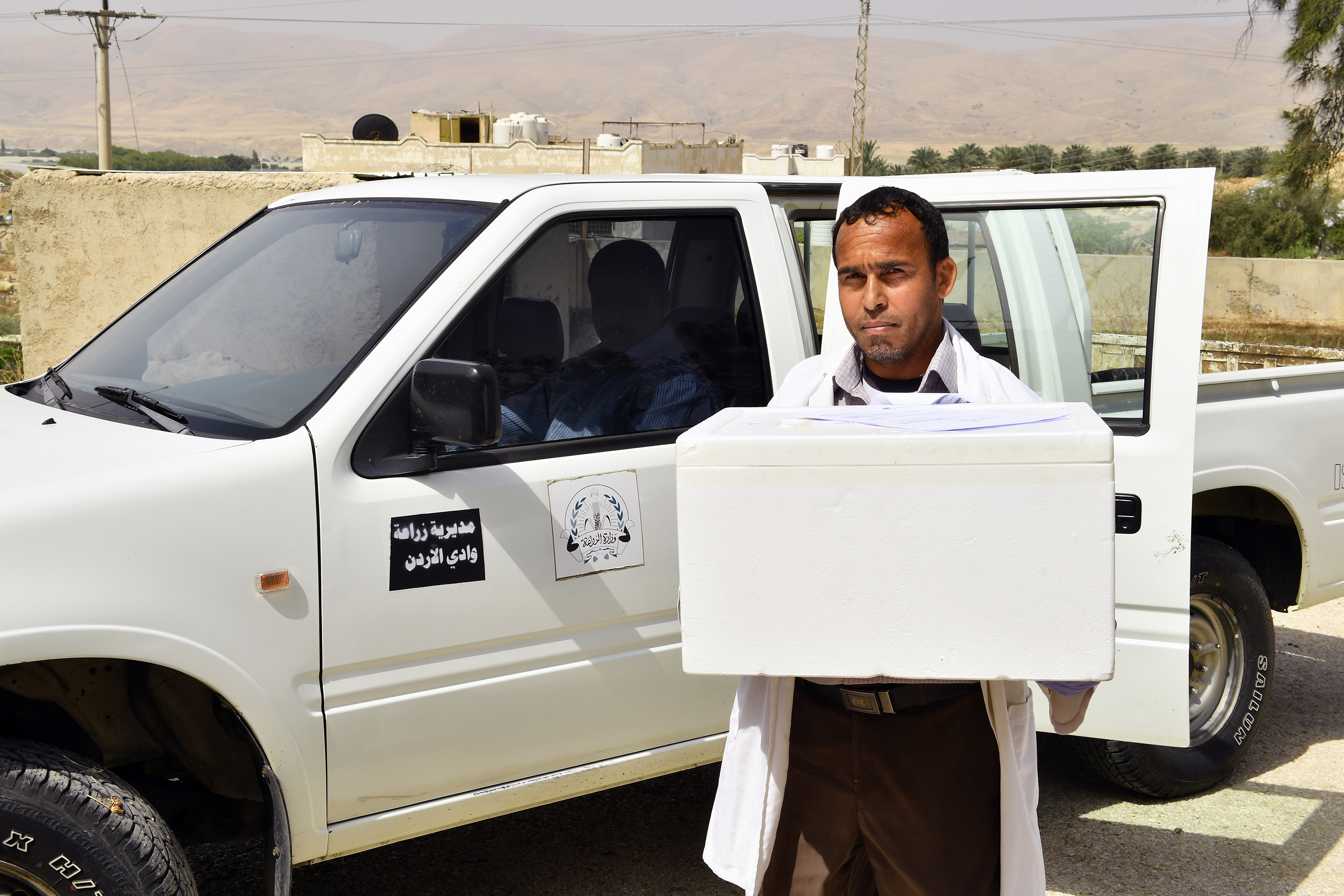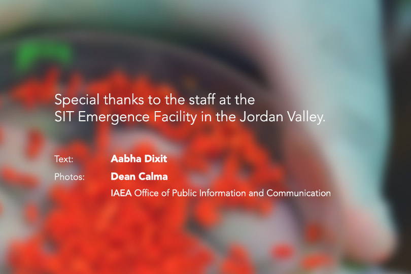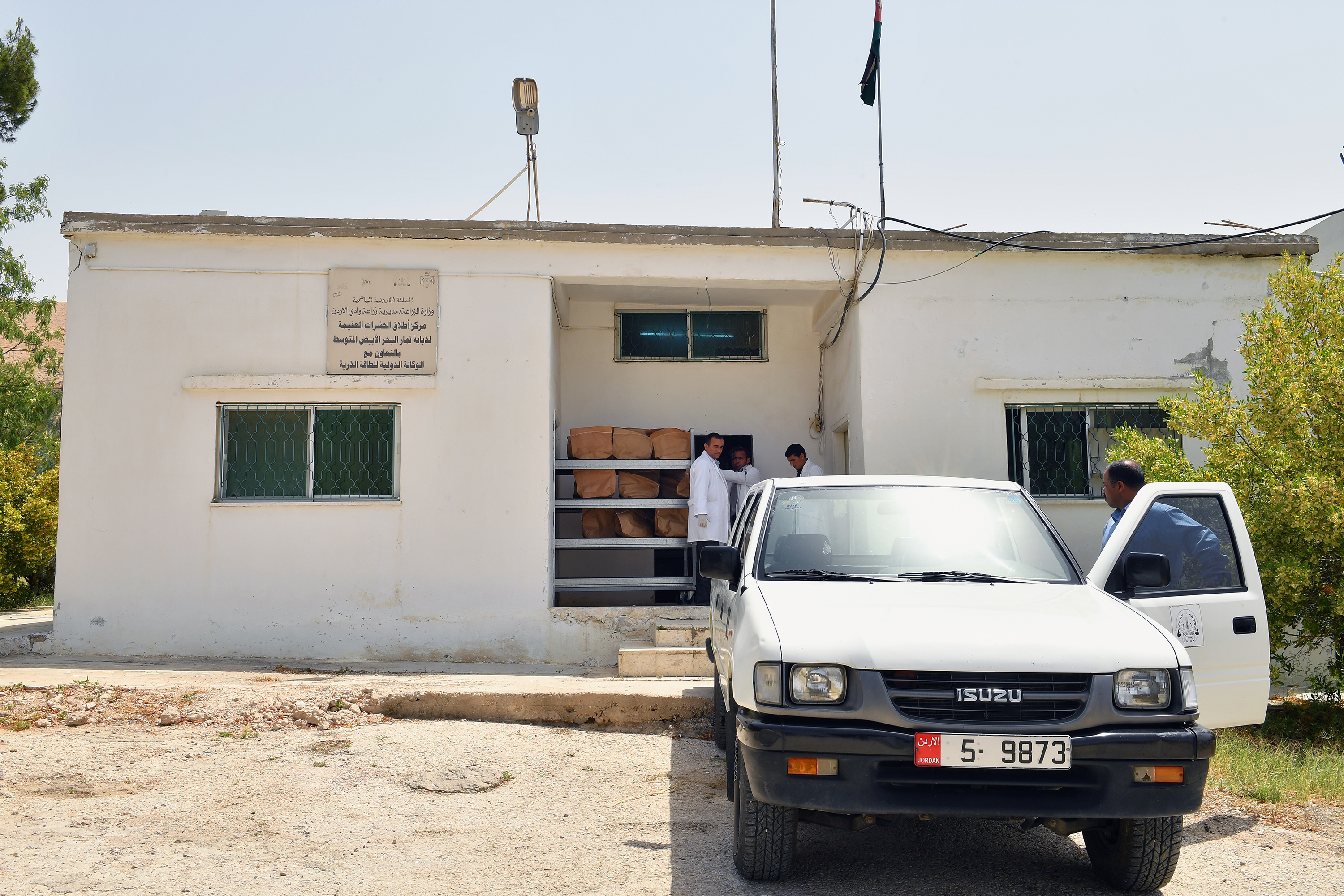 The irradiated male pupae produced, separated from the females and sterilized in Israel are received weekly at a border point in a small box, and are transported to the Jordanian SIT Emergence Facility that was set up with IAEA and FAO support.