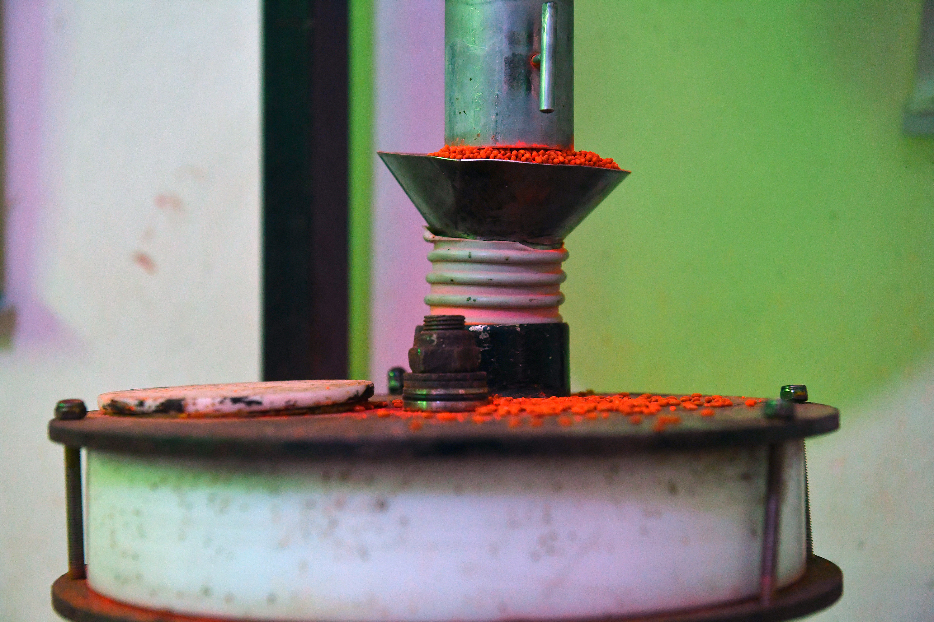 A rotating equipment that sorts out the volume of pupae to be put into paper bags.