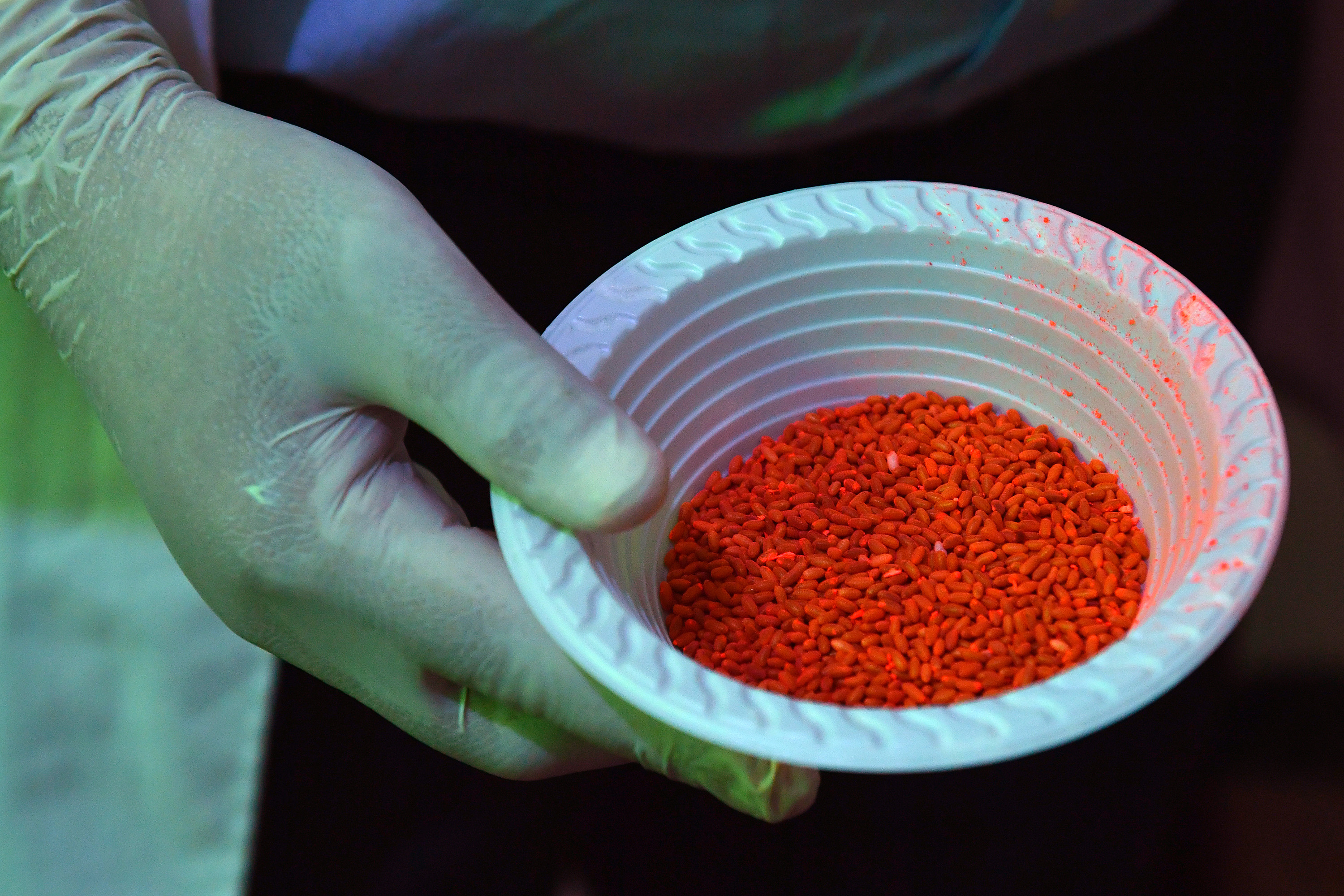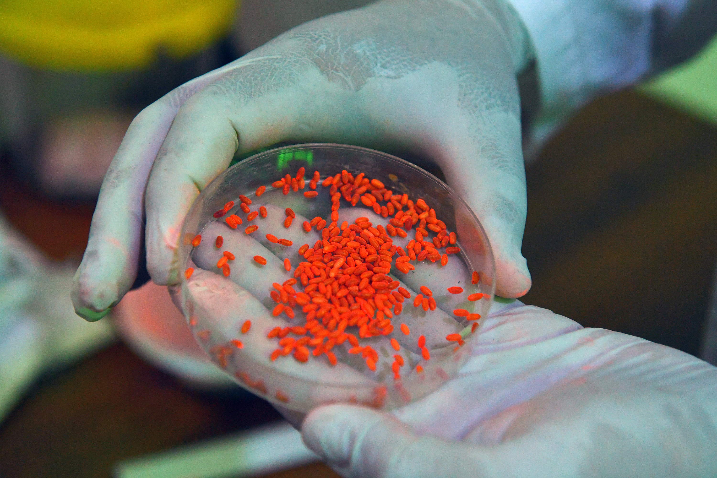 A small sample of pupae is taken for quality control tests.
