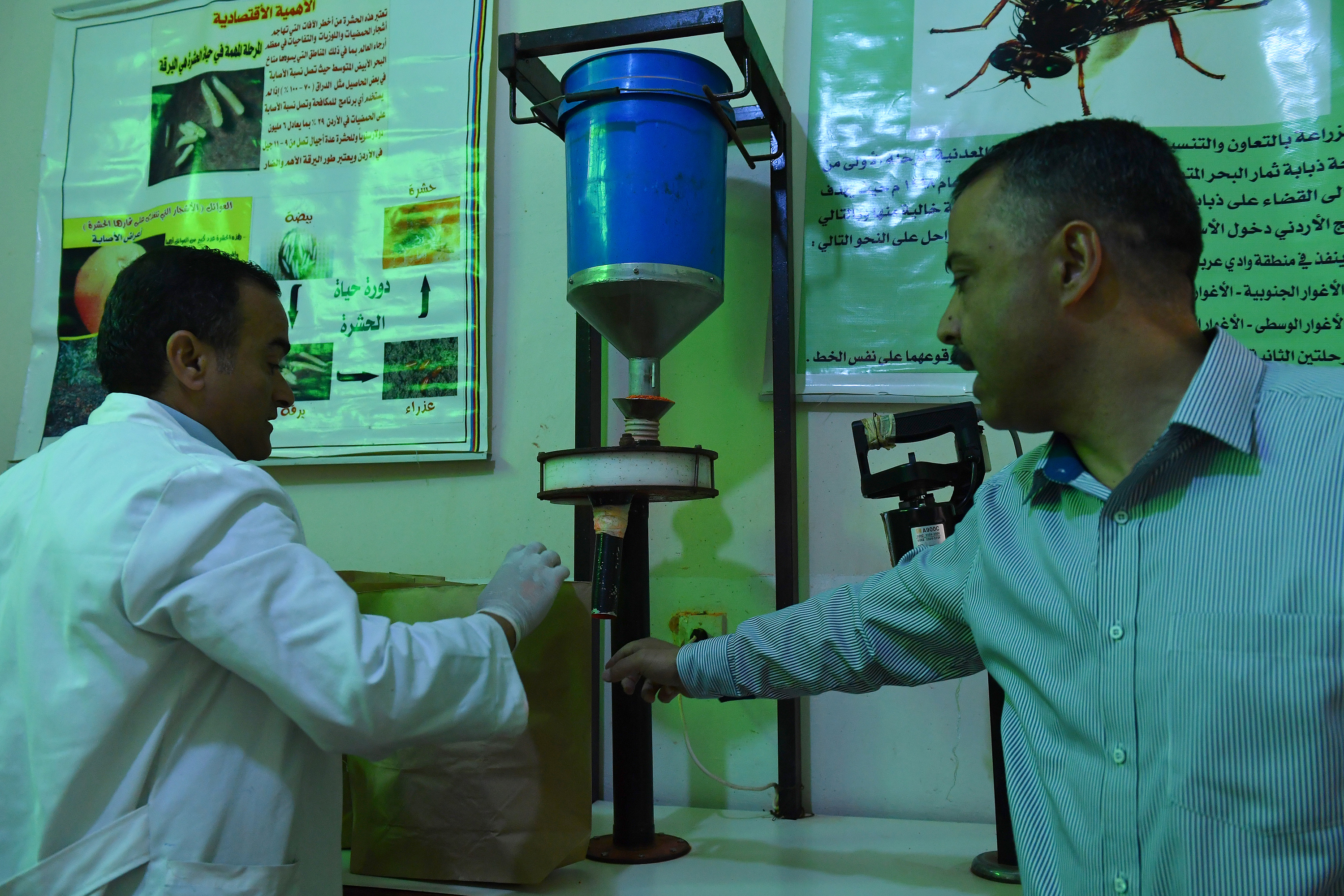 "The pupae weight, percent emergence of sterile adult flies and flight ability are checked,” said Ahmad Abu Siam, Supervisor of the SIT Emergence Facility.