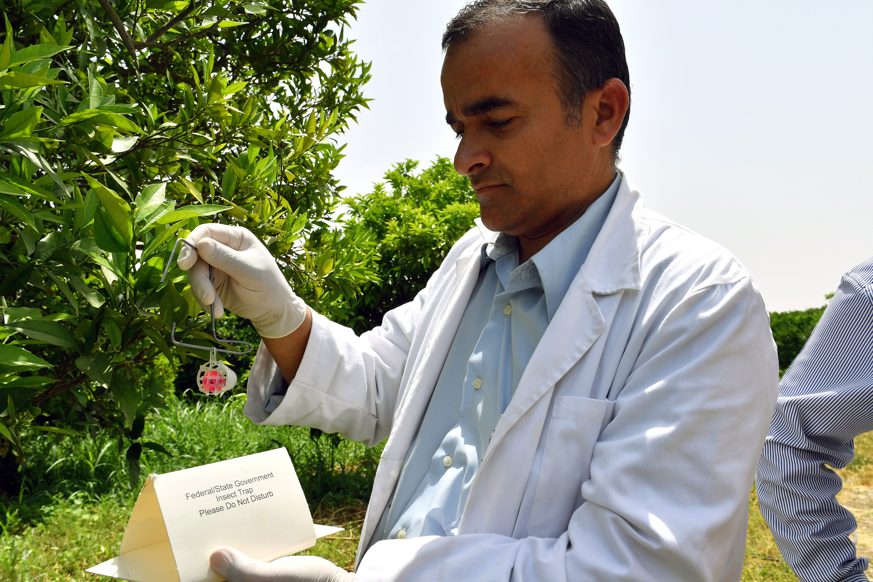 Ahmad Abu Siam preparing to release the sterilized male medflies.
