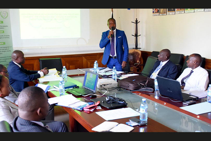 <p>“Young graduates in the field of nuclear safety and applications in Africa have recognised that the PGEC is the most effective means of building their competence. Because some of them have been appointed as heads of the regulatory bodies, the interest in participation is very high with the potential for great career prospects,” said a member of the IAEA Steering Committee Augustine Faanu from the Nuclear Regulatory Authority in Ghana, who is seen on this photo presenting.</p>
