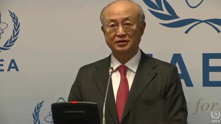IAEA Director General Yukiya Amano briefes the media following the opening of the Agency's Board of Governors meeting.
