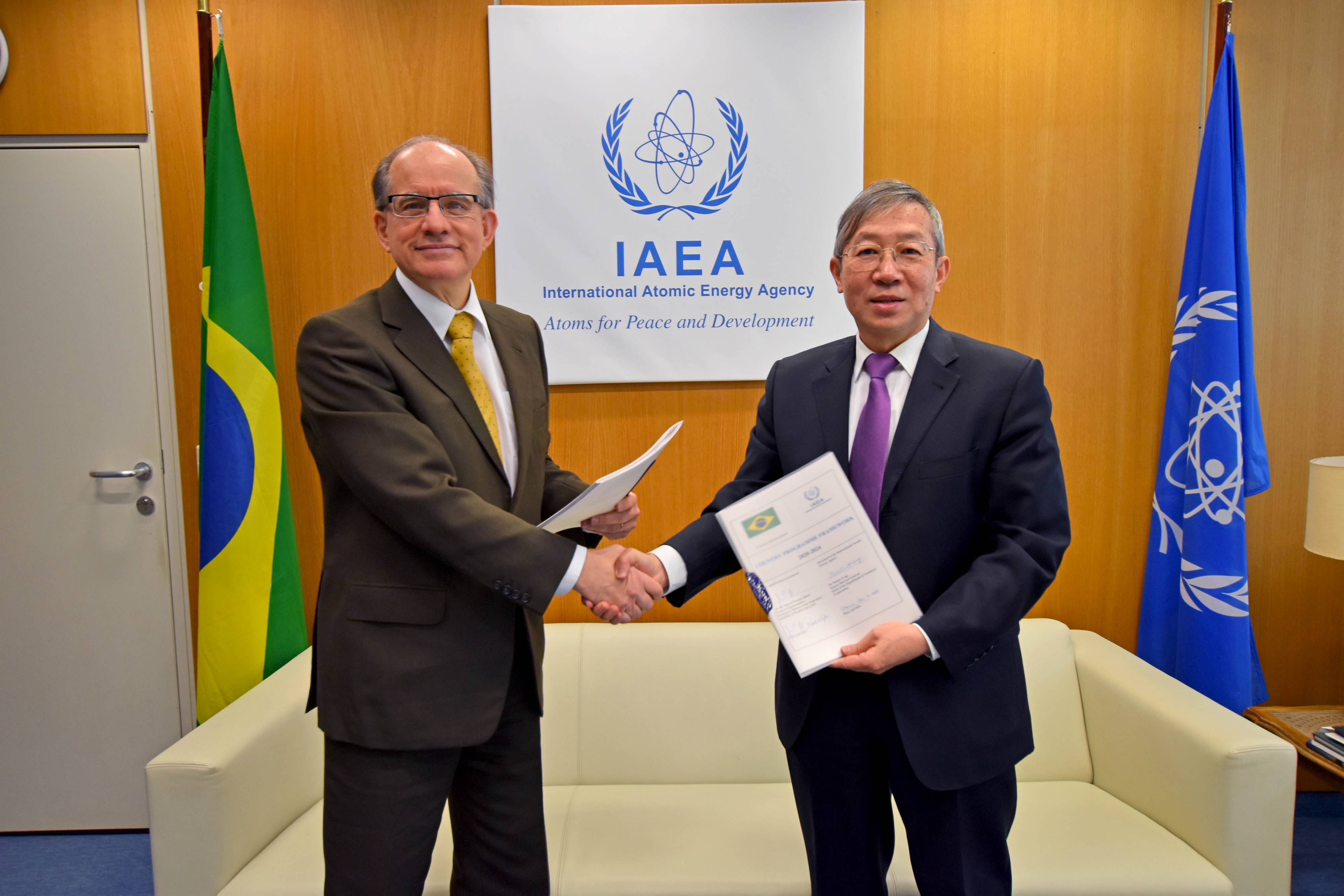 Marcel Fortuna Biato, Ambassador and Resident Representative of the Federative Republic of Brazil to the IAEA, and Dazhu Yang, IAEA Deputy Director General and Head of the Department of Technical Cooperation, signed Brazil's Country Programme Framework (CPF) for the period of 2020–2024 on 10 December 2019. A CPF is the frame of reference for the medium-term planning of technical cooperation between a Member State and the IAEA and identifies priority areas where the transfer of nuclear technology and technical cooperation resources will be directed to support national development goals.