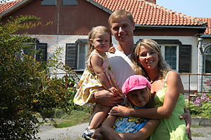 Work by the international community continues to assist the regions affected by the Chernobyl accident. Above, a Ukranian family in front of their home in Slavutich, a modern city located roughly 50 kilometers from the Chernobyl site. (Photo: P. Pavlicek)