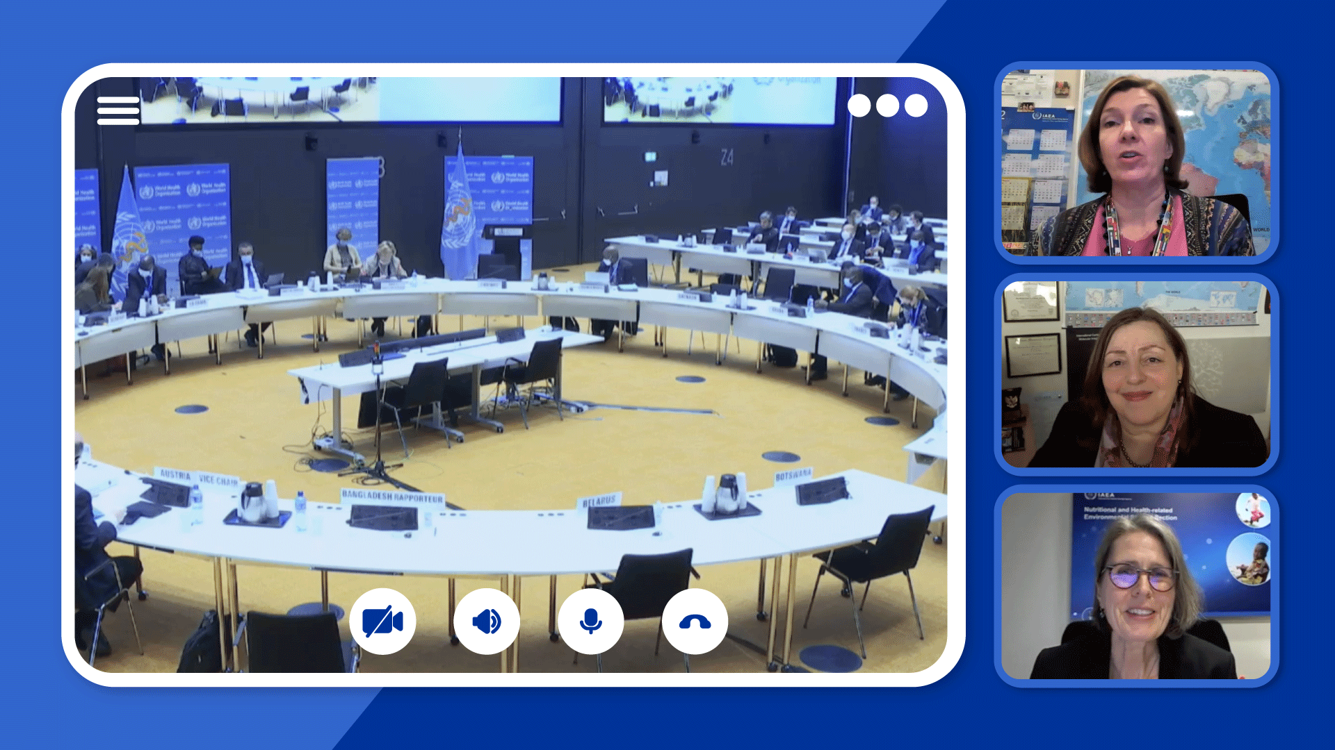 Lisa Stevens (Director of the IAEA&nbsp;Programme of Action for Cancer Therapy), May Abdel-Wahab (Director the IAEA Division of Human Health) and Cornelia Loechl (Head of IAEA’s Nutritional and Health-Related Environmental Studies Section) delivered&nbsp;statements at the WHO Executive Board meeting in Geneva, Switzerland. (Photo: M. Singelee/IAEA and A.Vargas/IAEA)