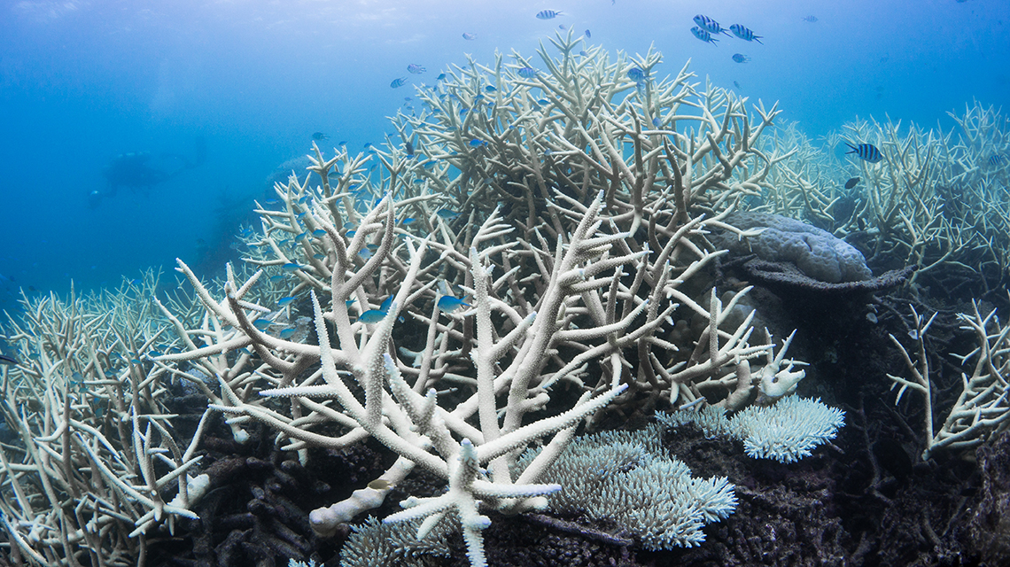 Carbon dioxide (CO2), which is naturally present in the atmosphere, dissolves into seawater. Water and carbon dioxide combine to form carbonic acid (H2CO3), a weak acid that breaks (or “dissociates”) into hydrogen ions (H+) and bicarbonate ions (HCO3). It has the effect of reducing the availability of carbonate ions (CO32-), as they bond with excess hydrogen, resulting in fewer carbonate ions available for calcifying organisms to build and maintain their shells, skeletons, and other calcium carbonate structures. If the pH gets too low, shells and skeletons can even begin to dissolve. Oceans are slightly alkaline, with a pH of around 8.1 (ranging from 7,8 to 8,5). Since the industrial revolution, the average pH of surface ocean waters has fallen by 0.1 pH units. This might not sound like much, but the pH scale is logarithmic, so this change represents approximately a 30 per cent in acidity. According to UNESCO, business as usual scenarios for CO2 emissions could make the ocean up to 150% more acidic by 2100.