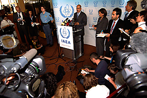 After the meeting, Director General Mohamed ElBaradei, spoke to reporters about the latest developments in North Korea, Iran and the budget increase, stating: