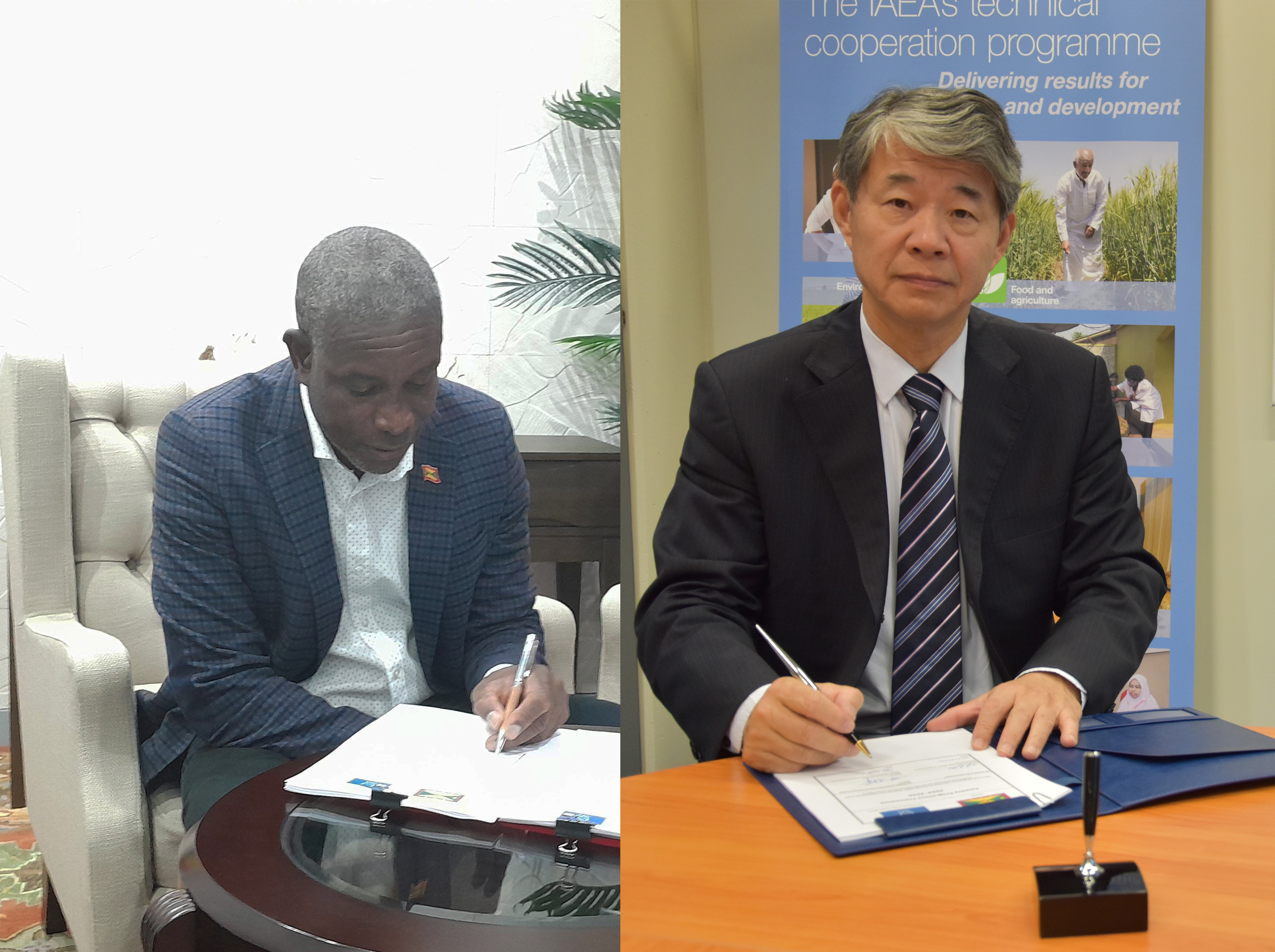 Hon. Joseph Andall, Minister of Foreign Affairs, Trade & Export Development, and Mr Hua Liu, IAEA Deputy Director General and Head of the Department of Technical Cooperation, signed Grenada's Country Programme Framework (CPF) for the period of 2024–2029 on 22 November 2024, and 25 November 2024, respectively. A CPF is the frame of reference for the medium-term planning of technical cooperation between a Member State and the IAEA and identifies priority areas where the transfer of nuclear technology and technical cooperation resources will be directed to support national development goals.