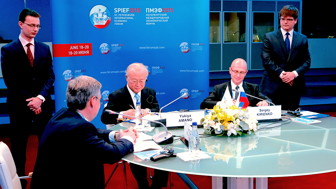 Following the signature of the agreement with Sergey Kiriyenko, Director General of Russia’s State Atomic Energy Corporation, ROSATOM, IAEA Director General Yukiya Amano also met with Russian President Vladimir Putin and Foreign Minister Sergei Lavrov. Mr Amano praised the strong partnership between the IAEA and Russia, and commended Russia for its firm support of the IAEA’s work. They also discussed the status of the nuclear negotiations between Iran and the group of six countries, and the ongoing implementation of IAEA safeguards in Iran.