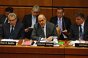 He also updated the Board on issues related to nuclear applications, nuclear safety and security, and IAEA management issues. On the topic of concerns over global food security, Dr. ElBaradei noted that the Agency′s efforts to utilize nuclear techniques to help produce new crop varieties is expected to increase in the coming years. He also announced that the World Health Organization (WHO) and the IAEA′s Programme of Action for Cancer Therapy (PACT) are working in tandem on a joint programme to combat cancer.