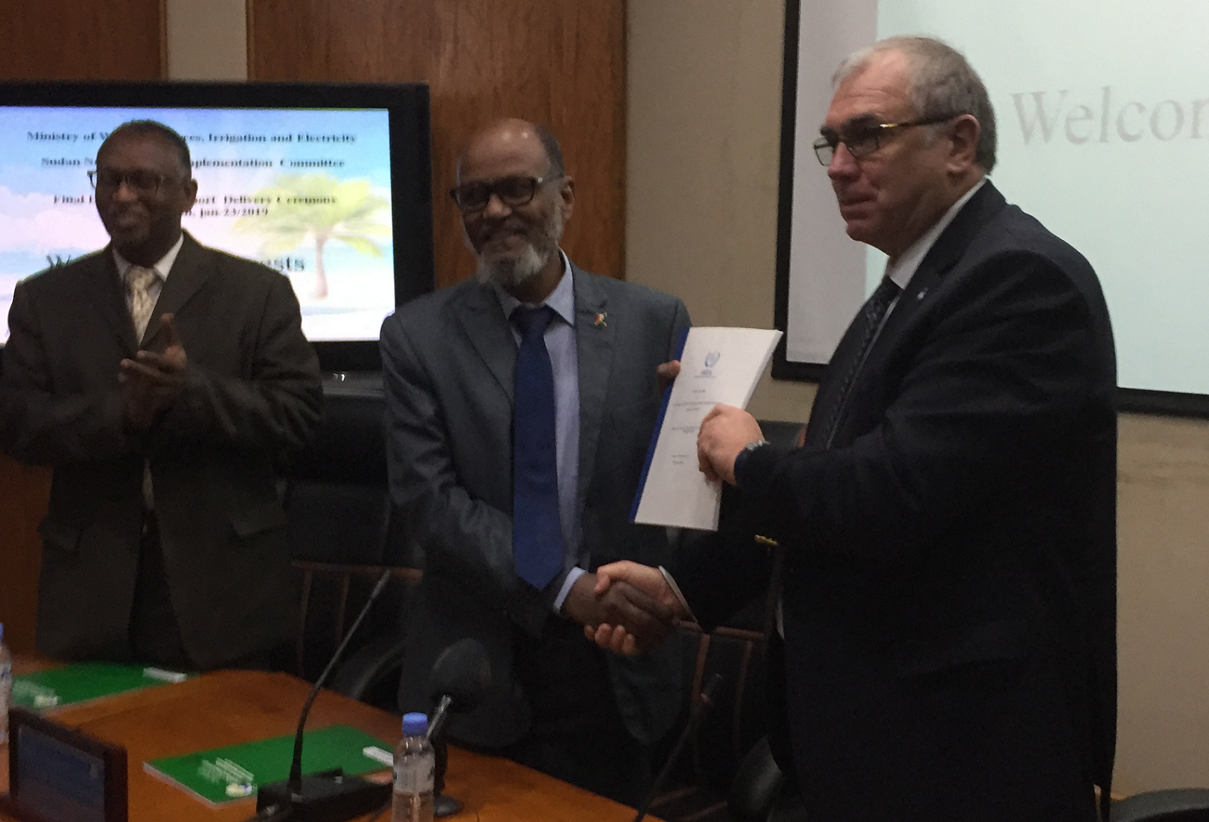 Mikhail Chudakov, IAEA Deputy Director General and Head of the Department of Nuclear Energy, handed over the report to Sudan’s Minister of Water Resources, Irrigation and Electricity, Khider Mohamed Gasm Elseed, on 23 January 2019 in Khartoum.