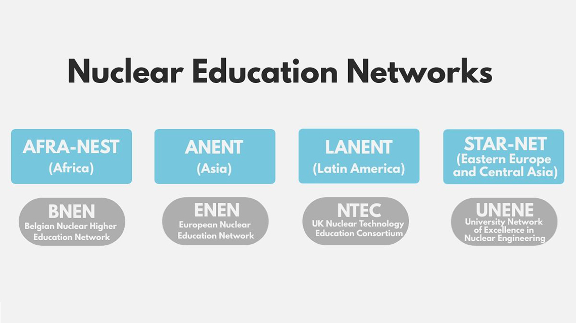 The IAEA works closely with educators around the world to foster global collaboration among universities, including facilitating infrastructure development and funding support for regional education networks. As part of these ongoing efforts, regional education networks fostered by the IAEA in Asia (ANENT), Africa (AFRA-NEST), Latin-American (LANENT), Eastern Europe and Central Asia (STAR-NET), have now joined forces with national networks to advance their cooperation in nuclear education, training, research and outreach.
