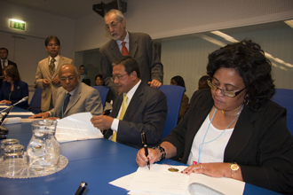 A trilateral process, involving the donor, India, the recipient country, Namibia and the IAEA, commenced when the donation agreement was signed on 22 September 2011 during the IAEA's Fifty-fifth General Conference.